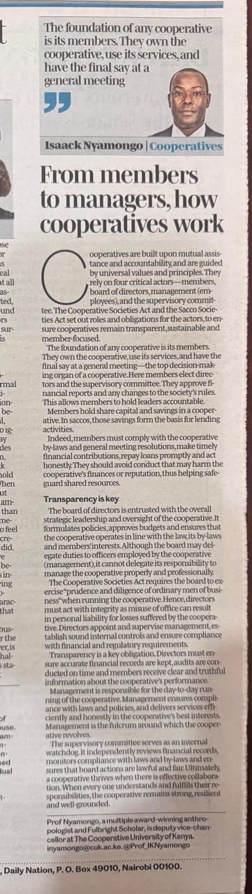 An article published in the daily nation newspaper written by professor Nyamongo.